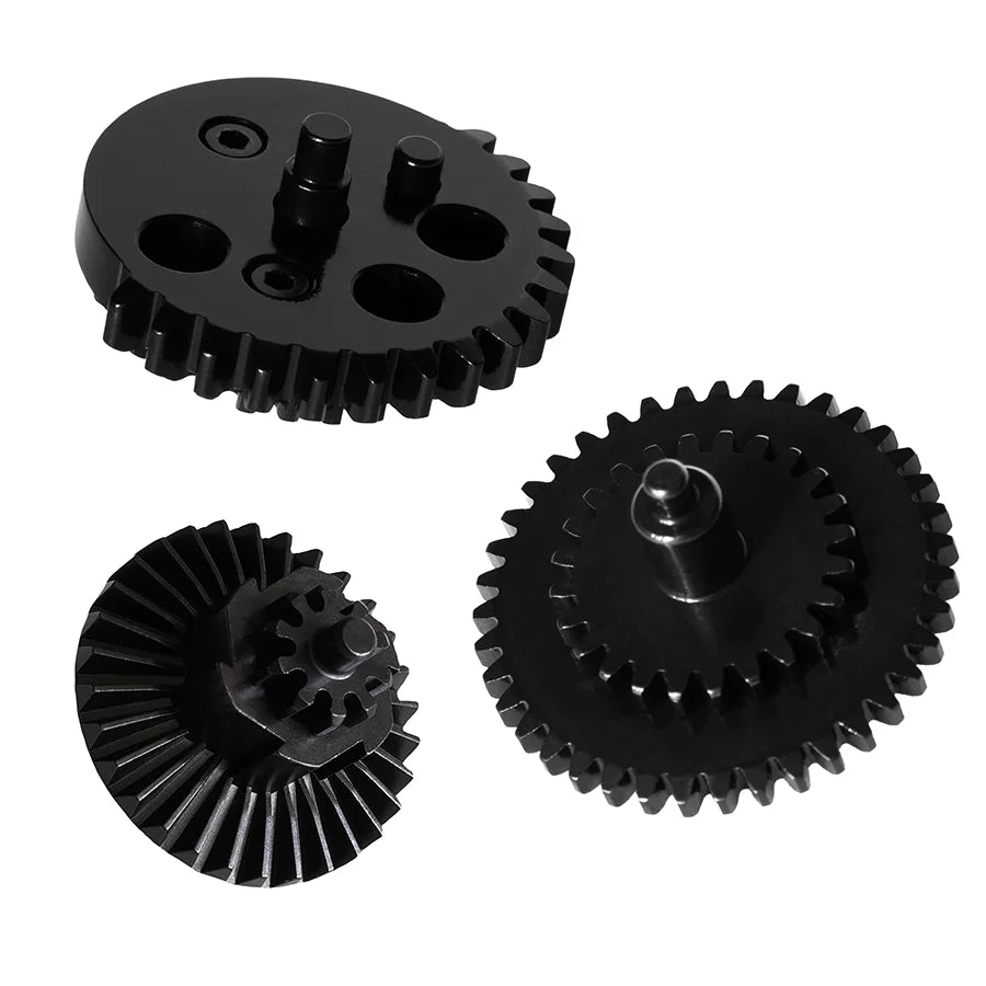 Bevel Gear consists of a bevel gear plate and a gear shaft made of MIM technology. Both sides of the bevel gear part and the inner hole have been precision machined to reduce the swing caused by the low precision of the MIM process. The gear shaft is produced using CNC turning, CNC gear hobbing, and straight grain rolling processes. The heat treatment process of the bevel gear and gear shaft is hardened to HRC42-47 and HRC39-42 respectively. The teeth of the gear shaft are relatively thin. In order to avoid brittle fracture, the hardness is slightly reduced to obtain better toughness. In addition, we also specially customized the tool parameters for the gear shaft to try to increase the width of the teeth and try to improve the toughness. A balance between boosting and keeping noise low.