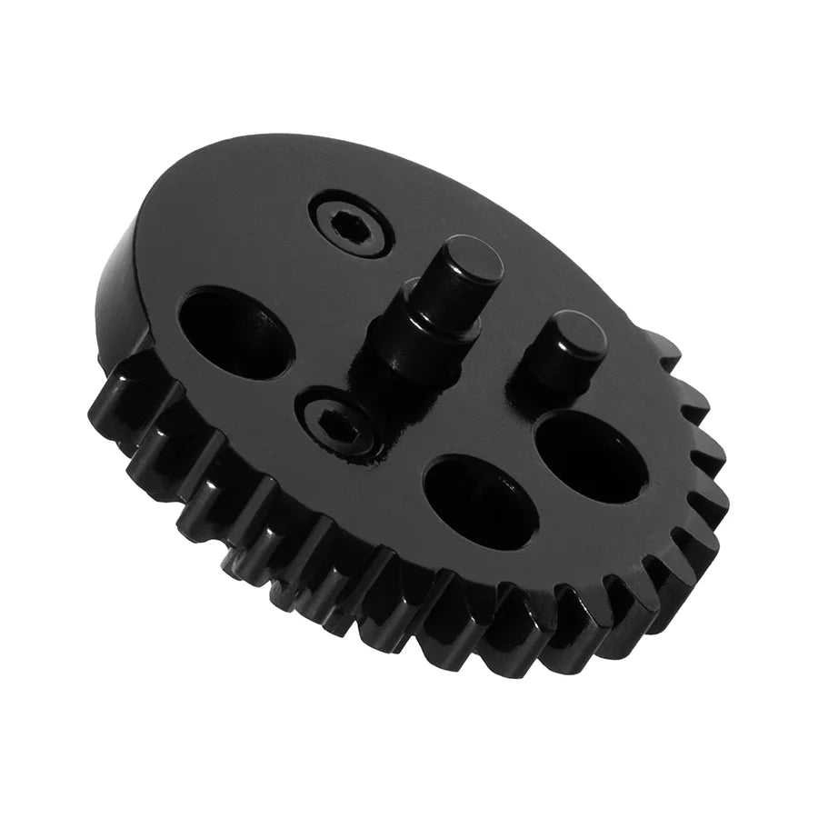 The New sector gear is different from the previous version, the new version changes the position of the Tappet Plate pin, a more reasonable position, delayed Tappet Plate release time, and better performance at high speeds. In the machining, we used customized hobbing tools to improve the tooth shape and mesh better with the piston's rack. The gears are made of 40Cr steel and are manufactured through six main processes: CNC turning, CNC hobbing, CNC milling, heat treatment, polishing, and blackening.