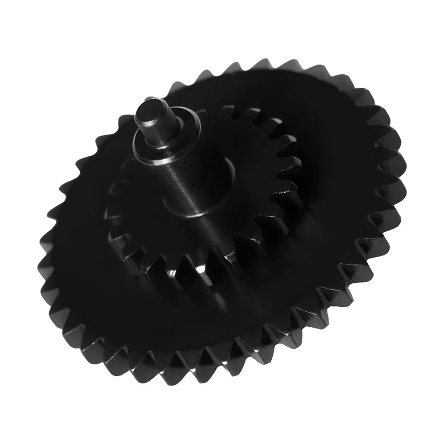Bevel Gear consists of a bevel gear plate and a gear shaft made of MIM technology. Both sides of the bevel gear part and the inner hole have been precision machined to reduce the swing caused by the low precision of the MIM process. The gear shaft is produced using CNC turning, CNC gear hobbing, and straight grain rolling processes. The heat treatment process of the bevel gear and gear shaft is hardened to HRC42-47 and HRC39-42 respectively. The teeth of the gear shaft are relatively thin. In order to avoid brittle fracture, the hardness is slightly reduced to obtain better toughness. In addition, we also specially customized the tool parameters for the gear shaft to try to increase the width of the teeth and try to improve the toughness. A balance between boosting and keeping noise low.